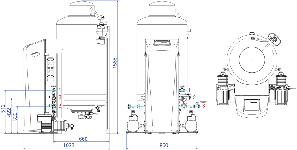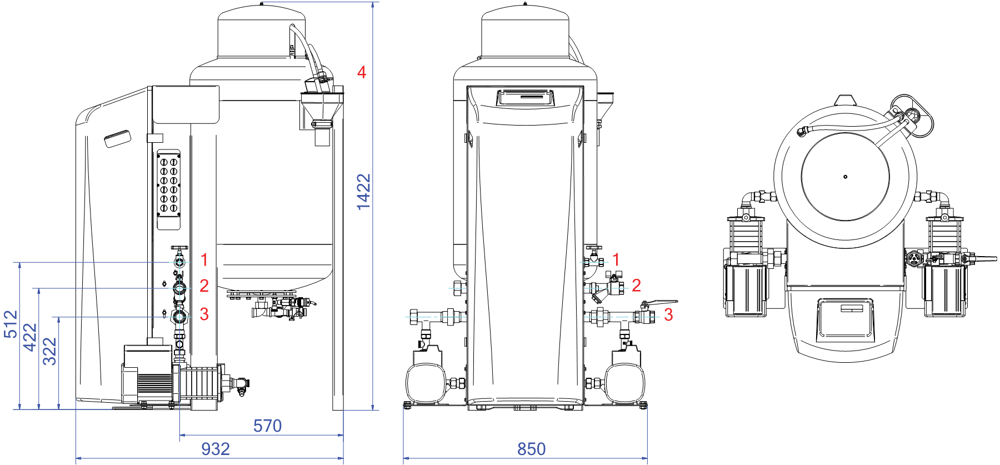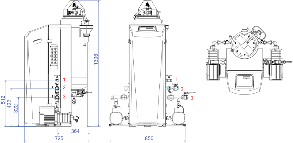 MultiControl Kompakt DUO Twin, otomatik bir genişleme ve basınç koruma cihazıdır. Ünitede 2 adet pompa (2x %50) ve 2 adet taşma vanası bulunmaktadır. Basınçsız bir genleşme tankı entegre edilmiştir.