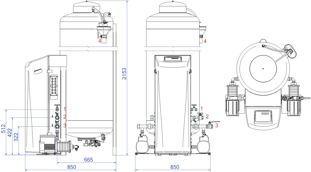 - 6 olası hazne hacmiyle birlikte gelir: 45, 75, 125, 200, 300 veya 500 litre