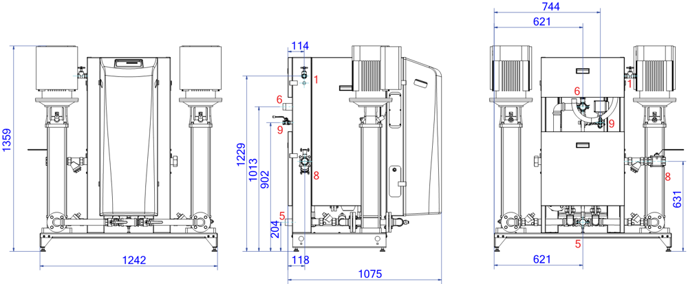 TopControl Modular DUO, otomatik bir genişletme ve basınç koruma cihazıdır. Ünitede 2 adet VFD pompa (2x %50) ve elektronik olarak kontrol edilen bir taşma valfi bulunur. Ayrı bir EP depolama tankı gereklidir.