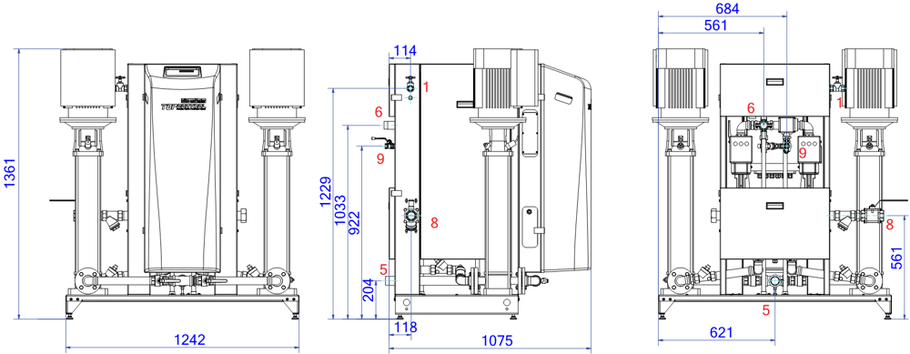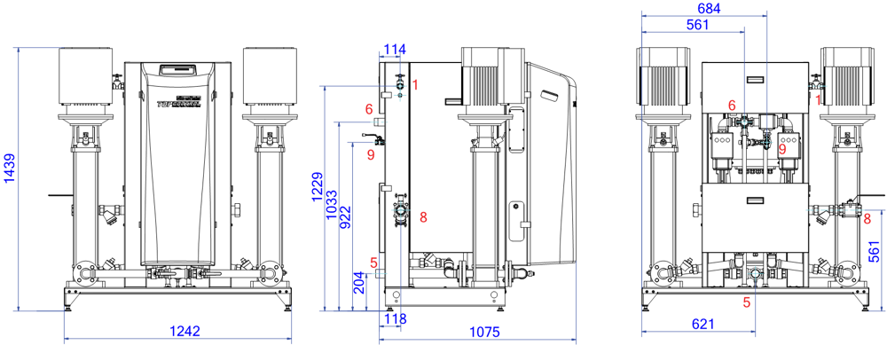 TopControl Modular MAXI Twin, otomatik bir genişleme ve basınç koruma cihazıdır. Ünitede 2 adet VFD pompa (2x %100) ve 2 adet elektronik kontrollü taşma valfi bulunur. Ayrı bir EP depolama tankı gereklidir.